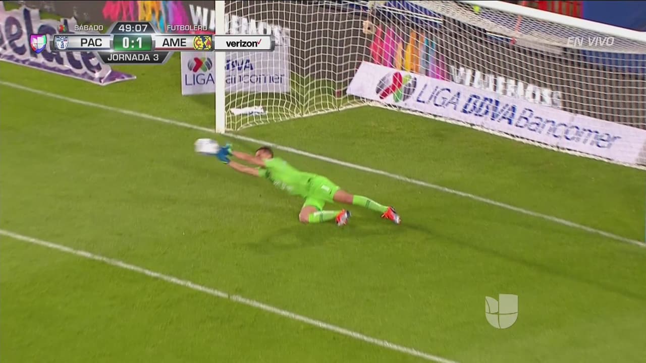 Jaine Barreiro probó al arquero del América de larga distancia, pero éste rechazó el esférico con ambas manos para mantener la ventaja.