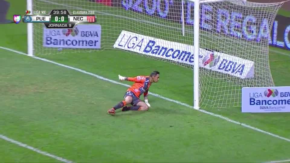 Desde la media distancia, el chileno sacó un bombazo que buscaba la base del palo del arco poblano.