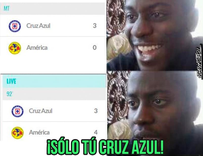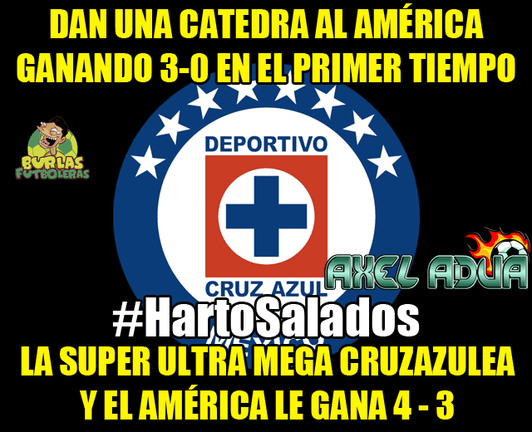Cruz Azul ganaba 3-0 al medio tiempo contra América, las Águilas reaccionaron y ganaron 3-4. Las burlas no se hicieron esperar para los cementeros.