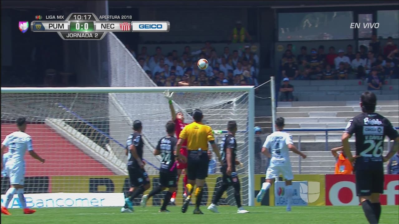 Disparo de larga distancia por parte del lateral de Pumas que pegó en el "metal".