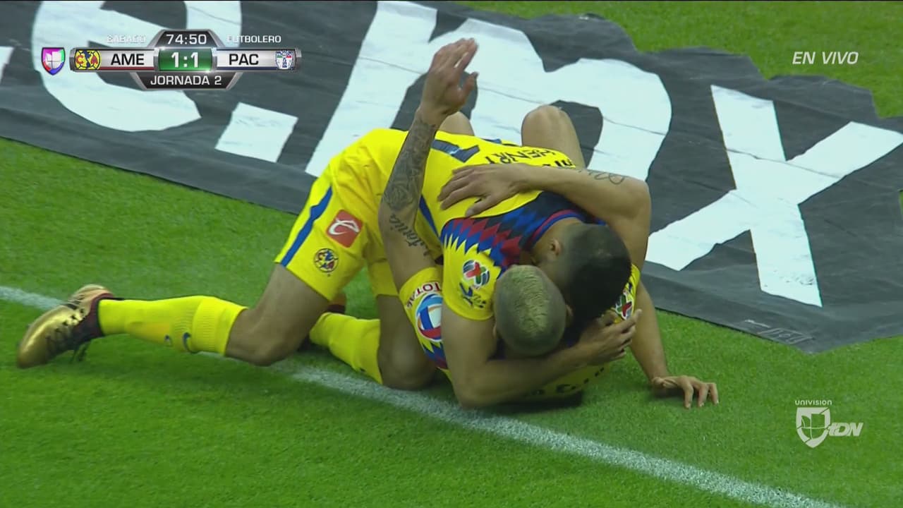Gran jugada de Mateus Uribe para que el atacante mexicano marque el gol que pone adelante a las Águilas.