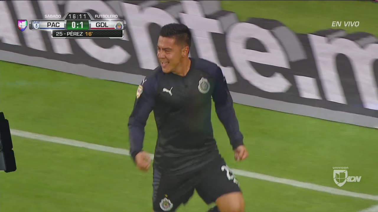 El volante de las Chivas apareció en el área y aprovechó un rebote para meter un riflazo que abrió el marcador para el cuadro tapatío.