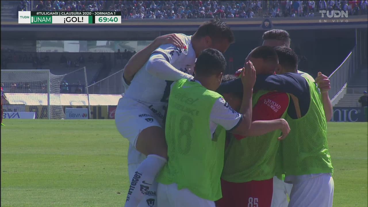 El DT elogió la actuación del canterano, quien le dio a Pumas su primera victoria del Clausura 2020.