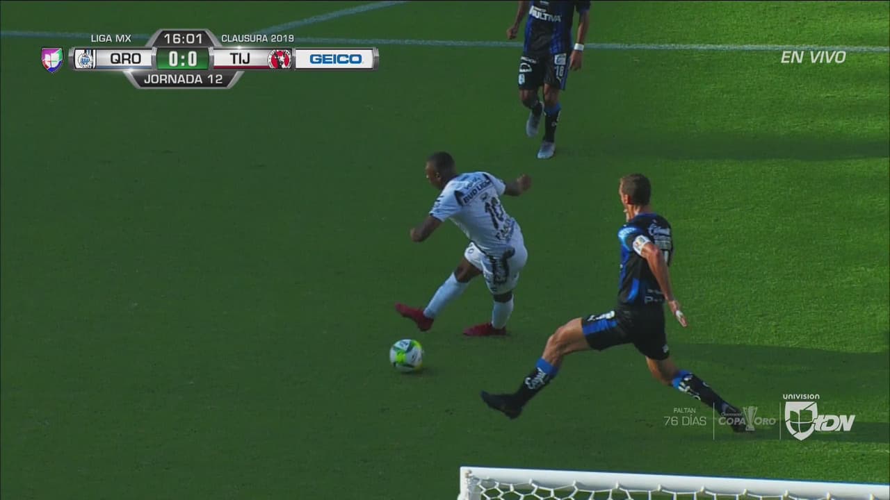 La primera llegada por parte de Xolos llega a través de un remate muy desviado de la portería del ecuatoriano.