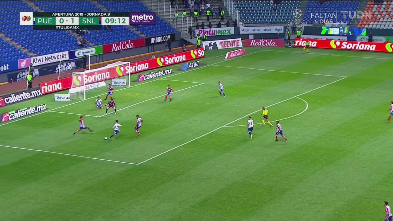 Catalán le retrasó el balón muy corto a Felipe Rodríguez, quien achicó de gran forma ante el disparo de Christian Tabó al 9’.
