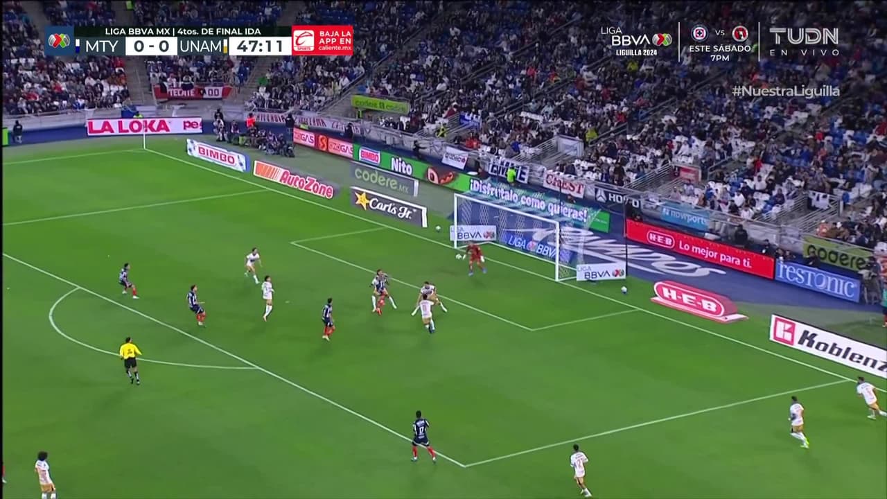 Termina el primer tiempo entre Monterrey y UNAM en la ida de los Cuartos de Final de la Liga MX.