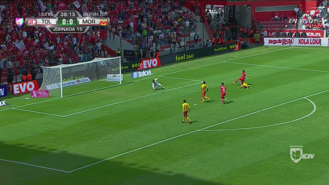 La oportunidad más clara del primer tempo tuvo a Pablo Barrientos y Sebastián Sosa como sus protagonistas. El delantero del Toluca entró solo y definió con un disparo potente cruzado pero el arquero de Morelia evitó el gol con una atajada con la mano