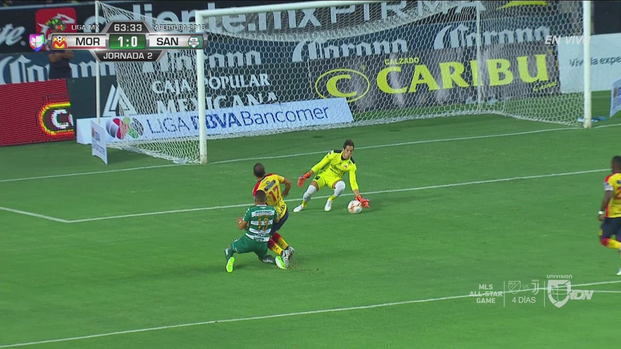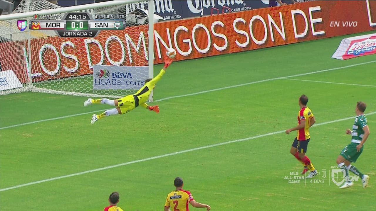 Diez minutos más tarde, volvería aparecer Acevedo como gran protagonista, tras un tiro libre ejecutado por Roberto Meraz para Irven Ávila. El guardameta resolvió sacando con los puños y era el responsable de mantener el cero en el arco de Monarcas.