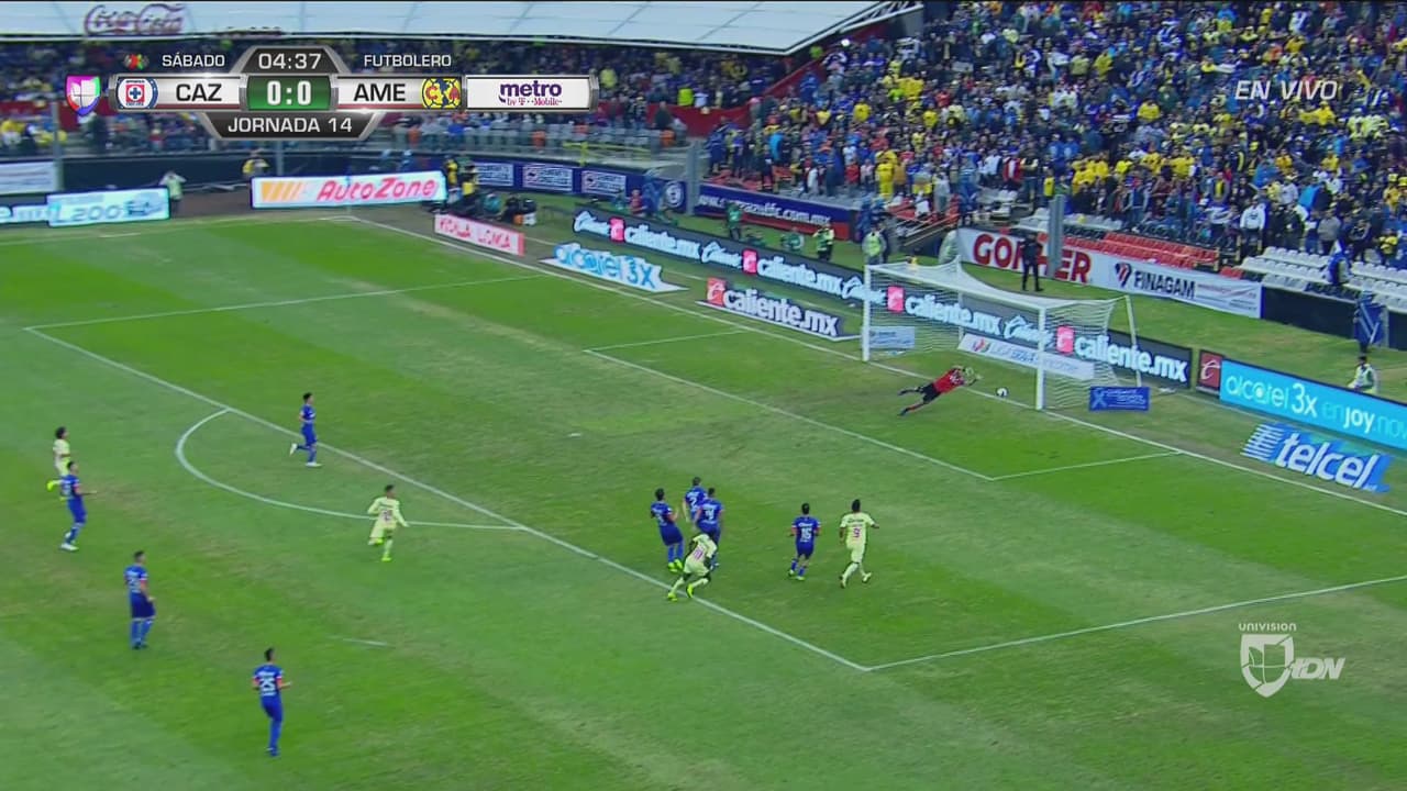 En la última jugada del primer tiempo fue Piojo Alvarado el que estrelló su remate en el metal y América se volvía a salvar.