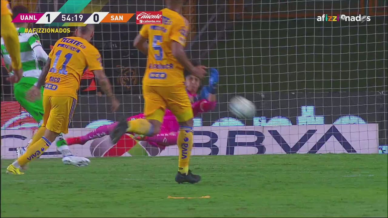 Los dos delanteros de Tigres se combinaron en el área, Nico mandó su tiro que el portero manoteó.
