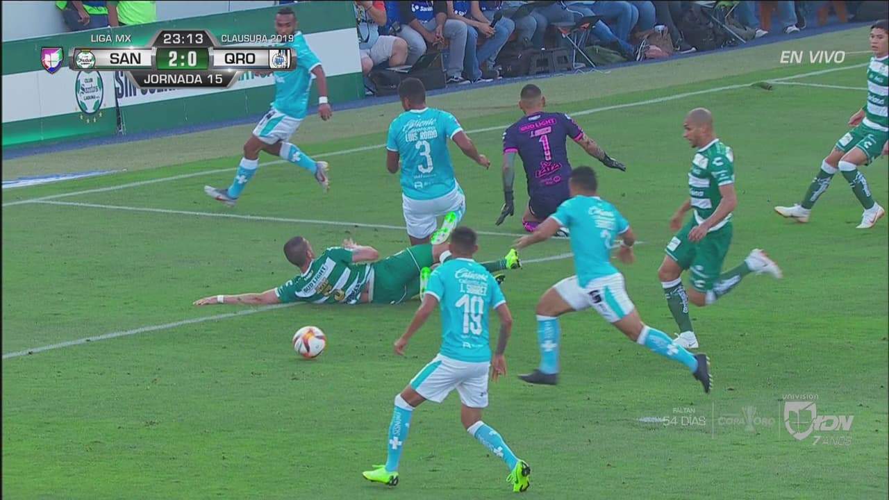 El centro fue bueno pero ninguno de los dos hombres de Gallos llegó al balón.