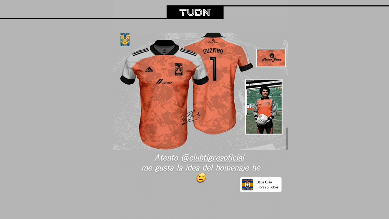 Por medio de sus historias de Instagram, Nahuel Guzmán compartió una imagen de un prototipo de uniforme con el nombre y colores similares a los que utilizaba Mateo Bravo, arquero de Tigres de 1975 a 1985.