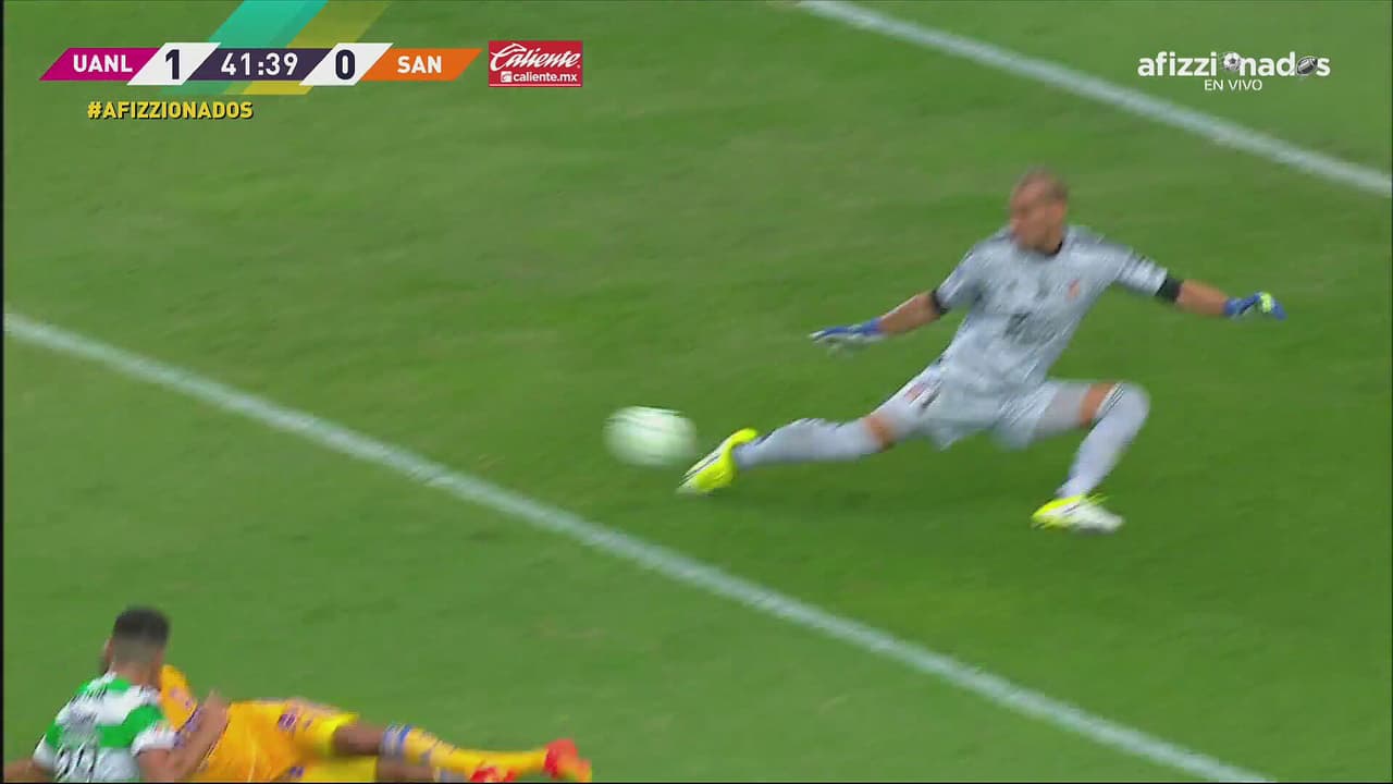 El jugador del Santos eludió rivales, entró al área y disparó cruzado, pero el ‘Patón’ achicó de gran forma.