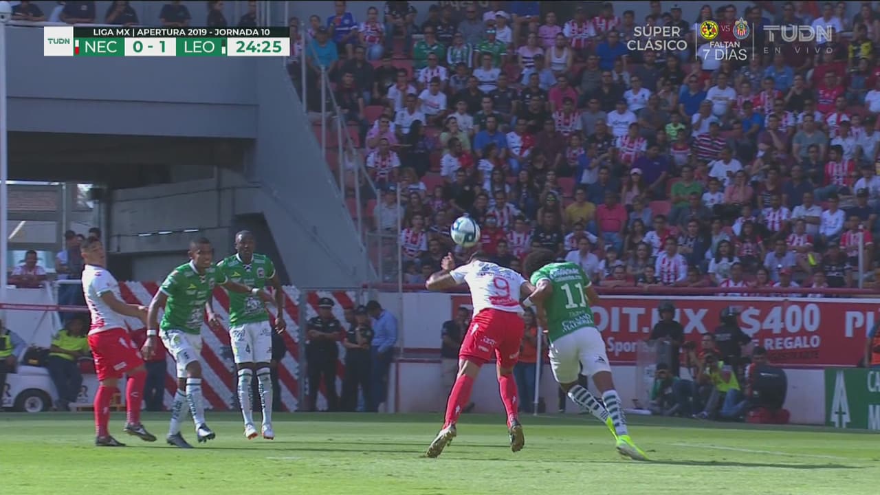 El 'Comandante' Quiroga por poco saca provecho tras un centro de costado. Para su infortunio, el cabezazo se va alto.