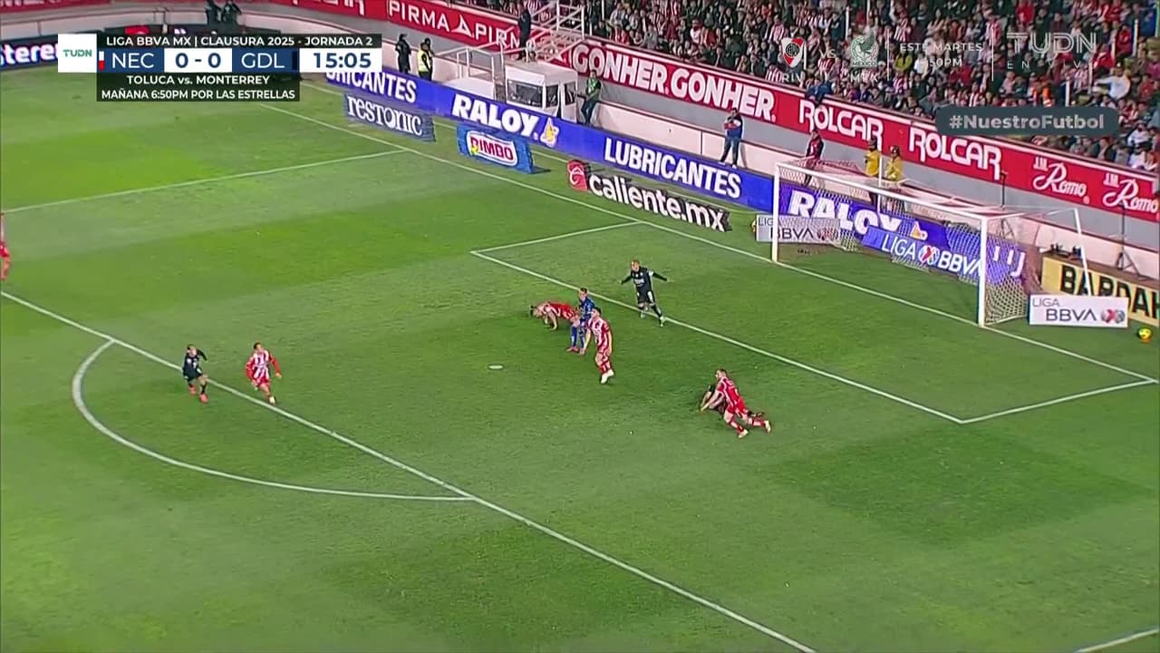 El cobro desde la esquina del argentino fue muy cerrado, fuera del alcance de los jugadores y por poco se cuela a las redes de la portería de Chivas. El portero estuvo atento.