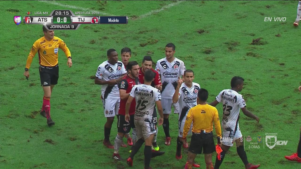 Al 27’, un balón largo provocó un choque de cabezas en el que Leiton Jiménez quedó lastimado, pero Tijuana continuó la jugada, Rivero rápidamente sacó un disparo que finalizó con una gran parada de Hernández, pero los tapatíos reclamaban ‘fairplay’ pues su defensor quedó tirado sobre el pasto, lo que encendió los ánimos de ambos cuadros.