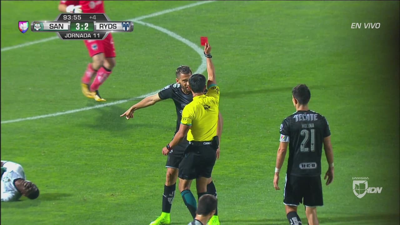 Cuando el juego ya estaba muy cerca de terminarse , Monterrey se quedó con 10 jugadores por la expulsión del defensor argentino.