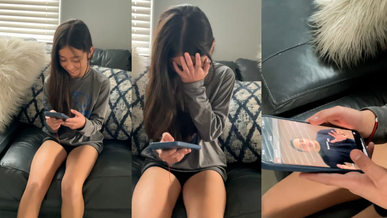 Al ver la invitación, la pequeña queda sorprendida y visiblemente emocionada, pues apenas pudo sonreír y le cayeron algunas lágrimas.