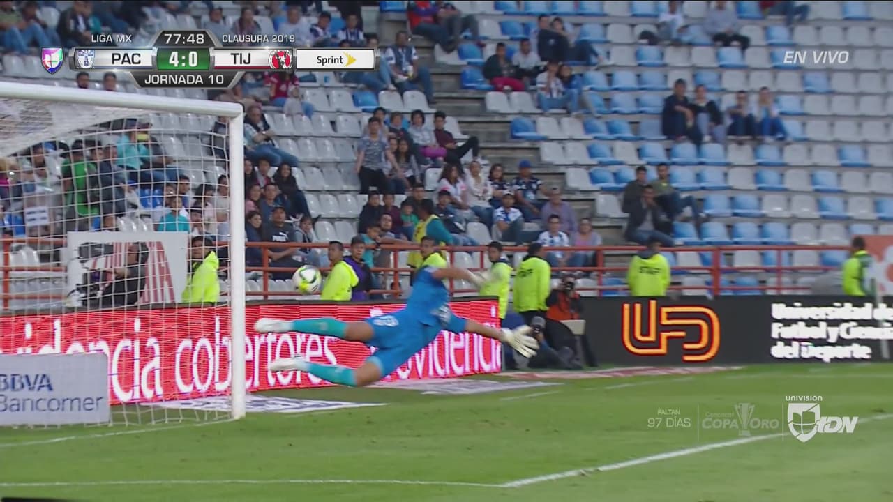 Xolos hace todo lo posible por conseguir el gol de la honra pero no hay forma que el balón traspase la meta del Pachuca defendida por Alfonso Blanco.