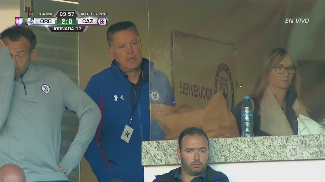 Luego de la segunda anotación de Querétaro, el directivo de La Máquina lució claramente molesto en uno de los palcos de La Corregidora.