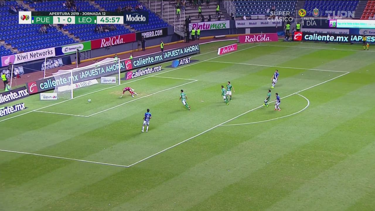 Al empezar la segunda mitad, La Franja se lanzó con todo al frente, pero el ‘22’ camotero no pudo darle dirección a su tiro al minuto 46’.