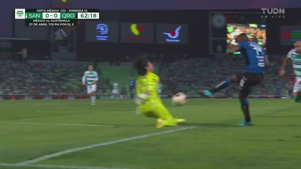 El delantero tardó en rematar por la barrida de Matheus y el portero alcanzó a achicar al 61’.