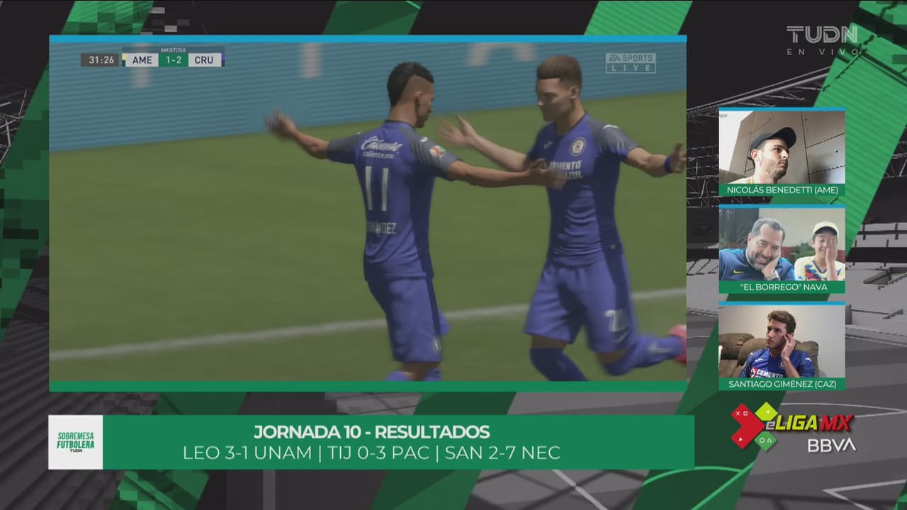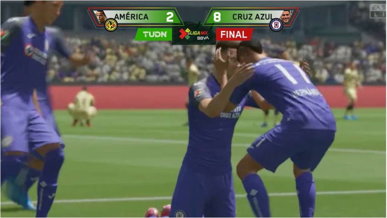 Cruz Azul apaleó 8-2 al América en el Clásico Joven virtual de la eLiga MX. Santi Giménez anotó 'póker' con su personaje y se lució frente a Nico Benedetti, que se llevó el abucheo del Estadio Azteca virtual.