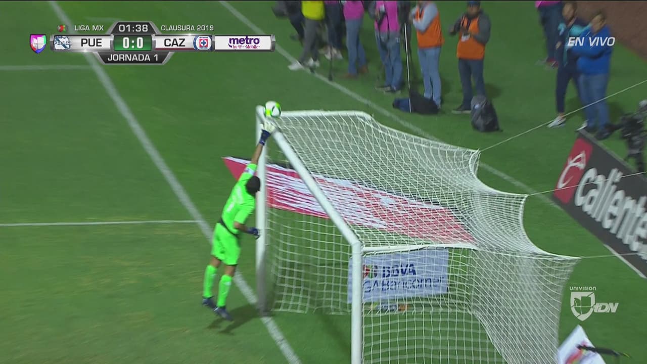 El futbolista colombiano del Puebla tiró un centro, pero el balón se fue cerrando y por poco sorprende al portero del Cruz Azul, que envió al tiro de esquina con un manotazo.
