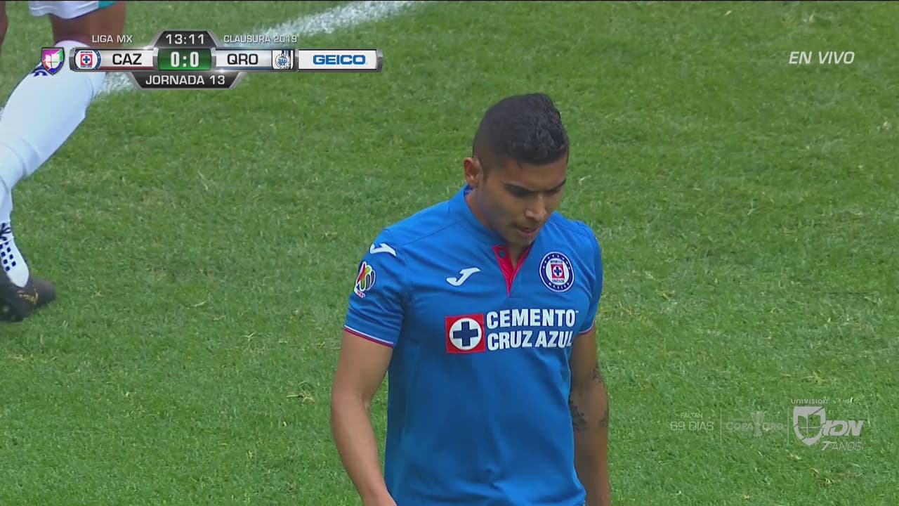 El jugador cruzazulino cabeceó un servicio al corazón del área, pero su remate impactó el travesaño del rival.