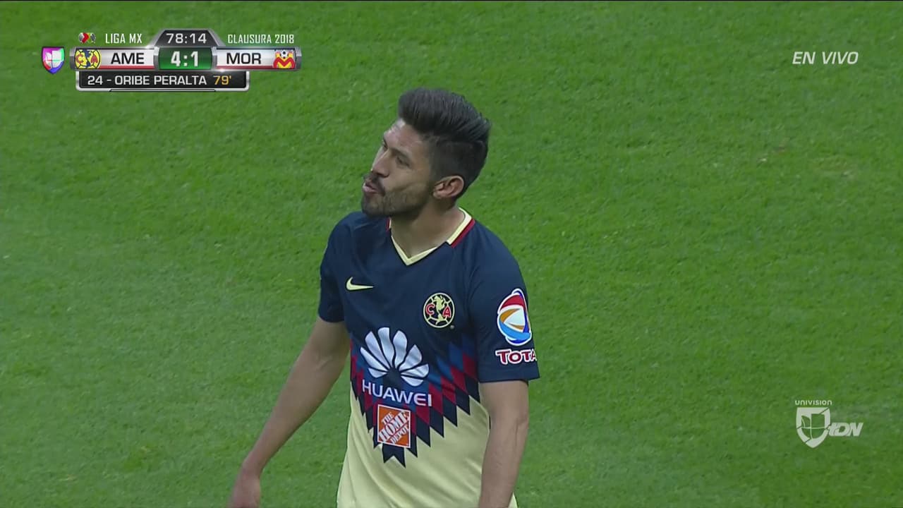 El delantero mexicano aprovechó un servicio de Andrés Ibargüen para rematar solo y poner el 4-1 en el marcador.