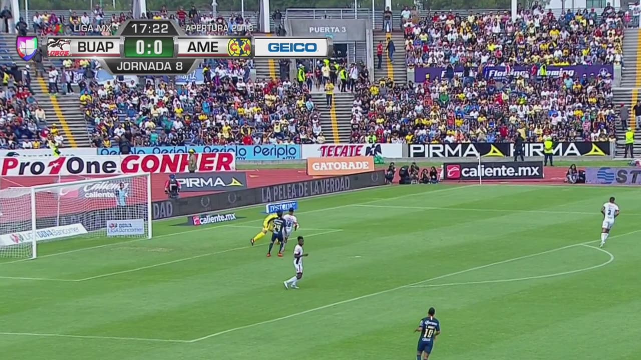 Toque largo de Paul Aguilar que dejó a Oribe solo en el área pero el control no fue bueno y se perdió la oportunidad