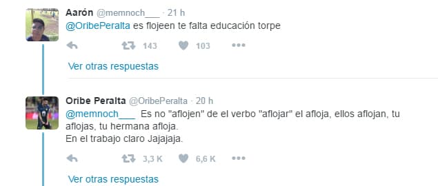 Un tuitero le respondió: "@OribePeralta es flojeen te falta educación torpe (sic)".