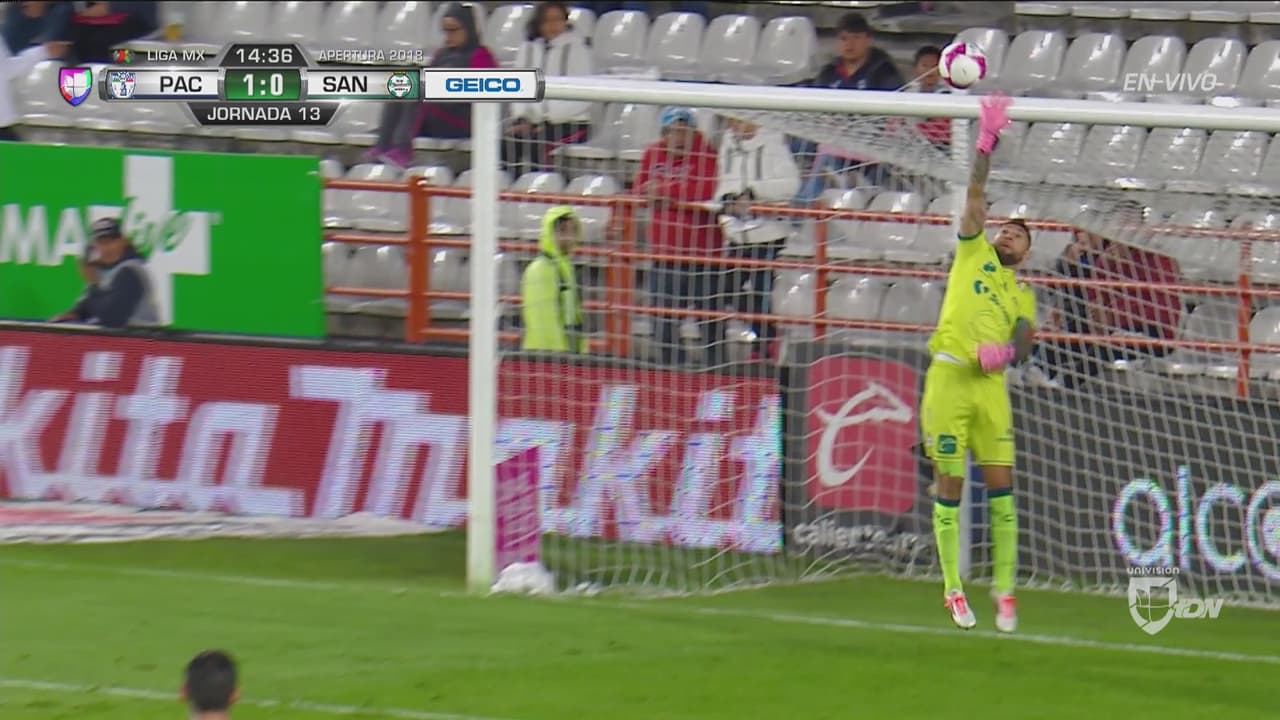 El arquero de Santos le metió la mano a un 'riflazo' del Pocho.
