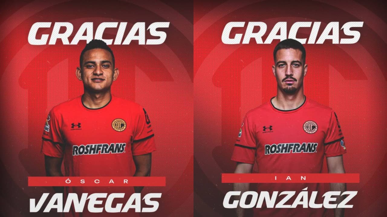 Toluca anunció la salida de Óscar Venegas e Ian González, con lo que liberan el máximo de extranjeros que pueden tener en el equipo de cara al Apertura 2022 de la Liga MX que arranca la próxima semana.