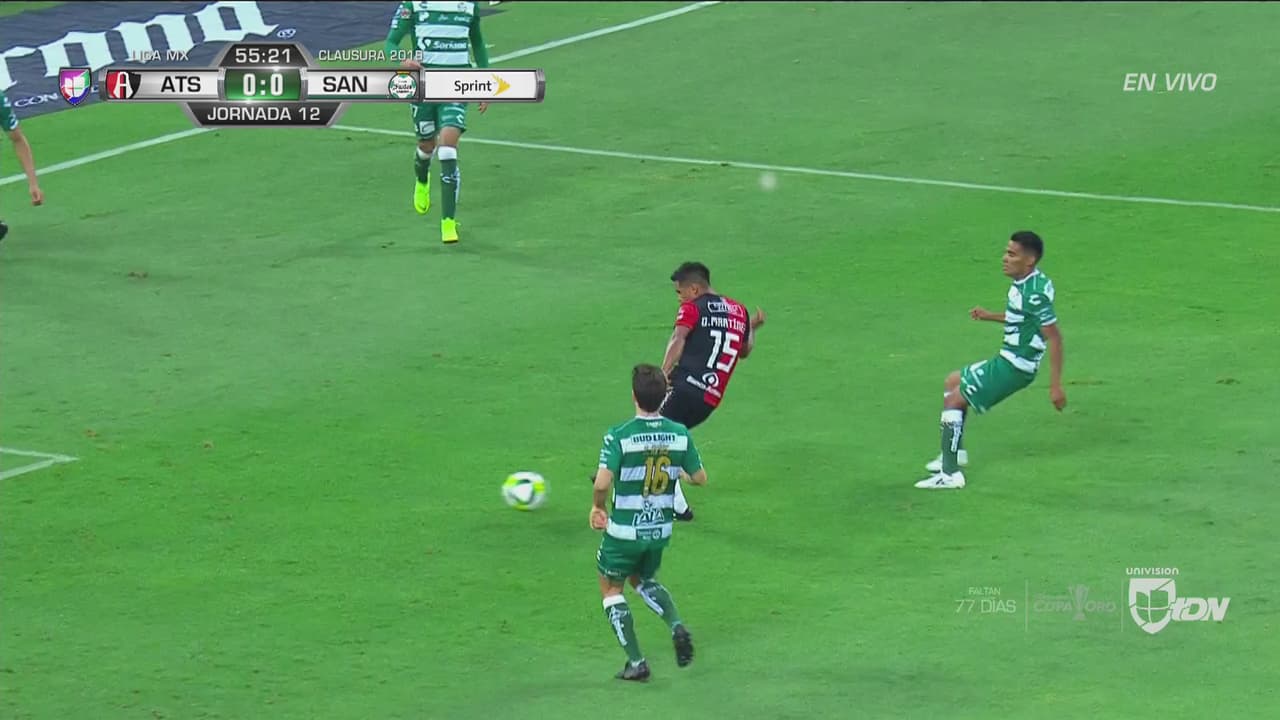 Gran desborde de Isijara por la banda derecha, metió diagonal retrasada, pero el contención de los Rojinegros no supo definir y el balón se fue abierto.