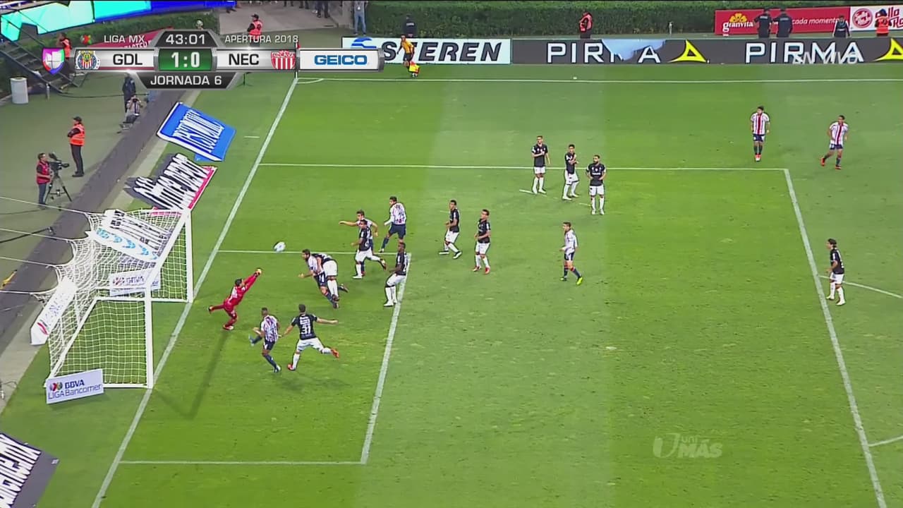 Gran cobro de tiro libre de ‘Chofis’ López, pero el portero hidrocálido estuvo atento para rechazar el peligro de su portería.