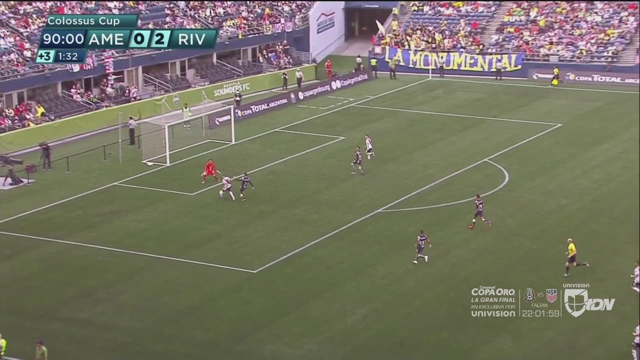 La defensa de las Águilas volvió a quedar mal parada y, tras un pase en profundidad, Beltrán encaró en solitario a Jiménez, quien con un achique resultó ganador en la jugada.