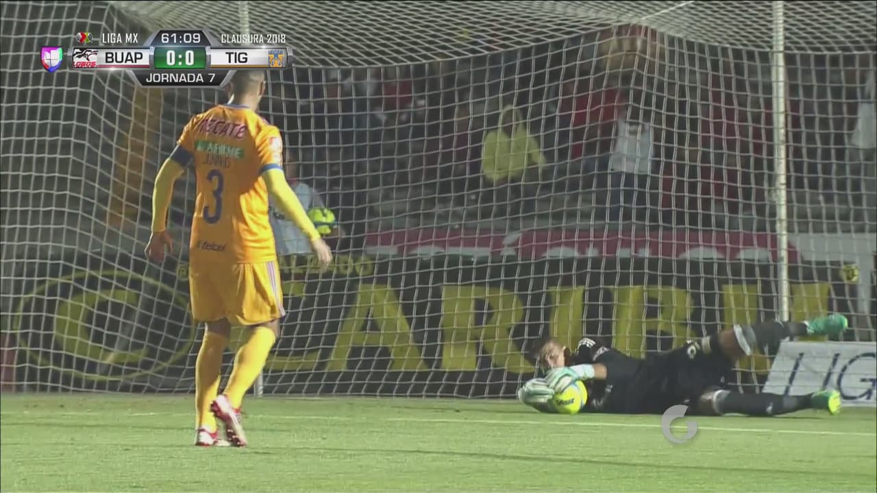 Luego de un error de la defensa felina, el volante ecuatoriano remató girando en el área pero el arquero de Tigres estuvo atento para mantener el 0-0.