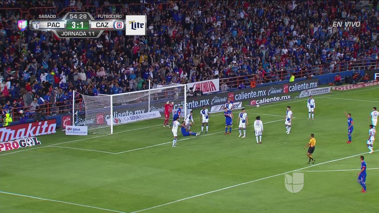 Otra vez el central de Cruz Azul apareció en el área, remató y el balón apenas se fue desviado de la portería de los Tuzos.