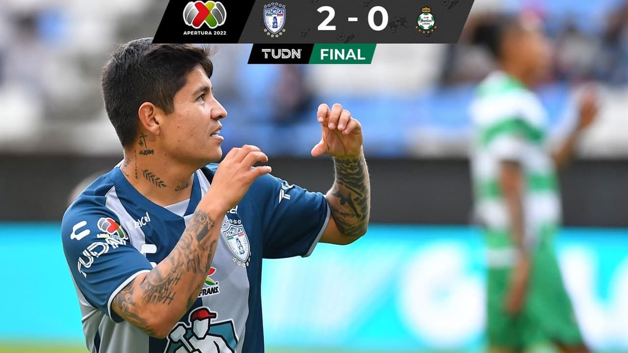 Pachuca derrotó 2-0 a Santos Laguna en el Estadio Hidalgo en partido de la Jornada 12 del Apertura 2022 de la Liga MX y con ello alcanzó a Rayados en la cima de la tabla de posiciones del torneo, solo por debajo debido a su diferencia de goles.