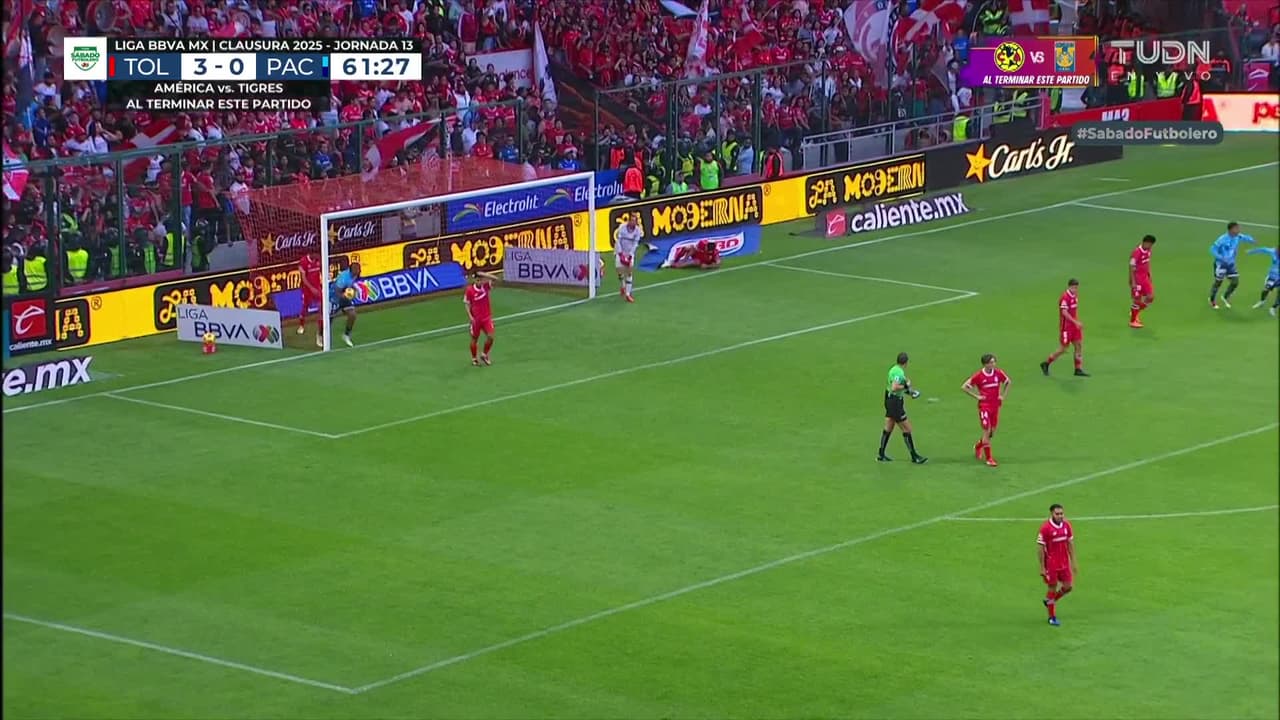 John Kennedy manda centro al área chica, pero en la trayectoria se cruza el guardameta del Toluca para meterla en su propio arco.