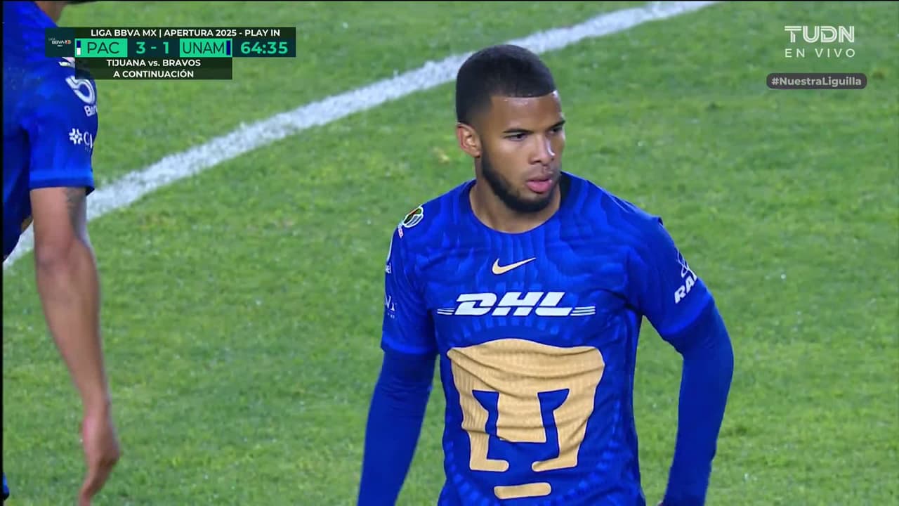 Pedro Vite la enceuntra en el área, le pega y la manda a la red para el Pachuca 3-1 Pumas.