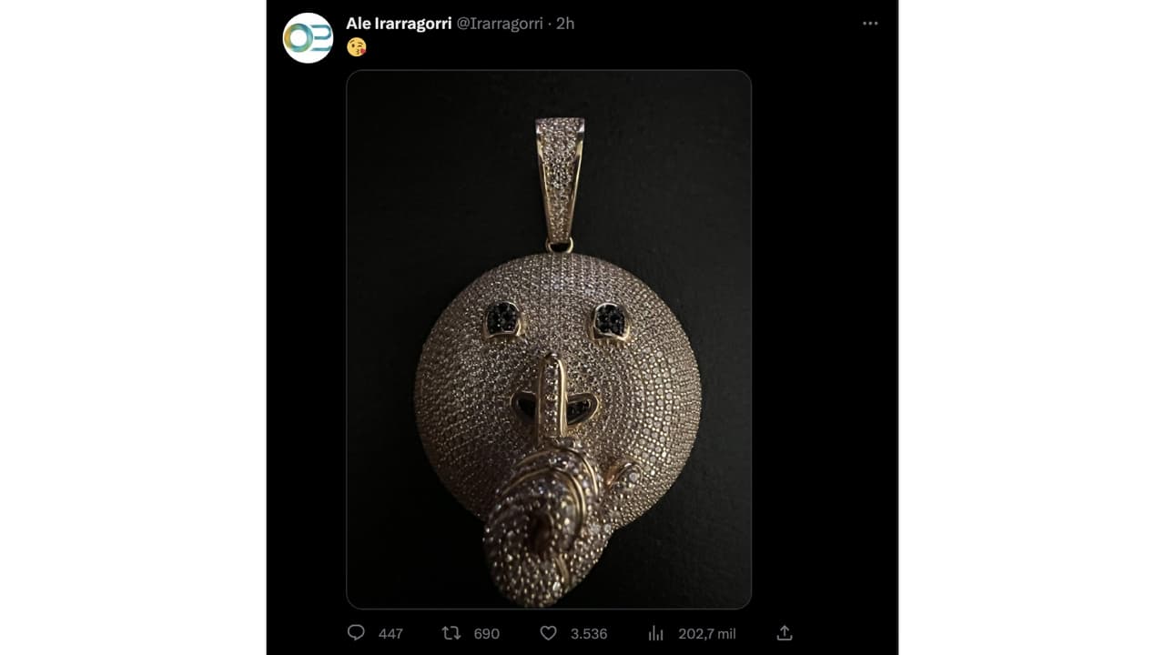 Alejandro Irarragorri, presidente de Grupo Orlegi que pertenece a Santos Laguna y Atlas, reaccionó en redes sociales con una imagen de un dije que representa a un rostro que silencia a alguien, luego de eliminar al Pachuca del Repechaje en el Clausura 2023 de la Liga MX.