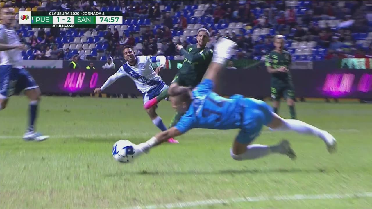 ¡Par de atajadas de antología de Vikonis que evitan el tercer gol del Santos!