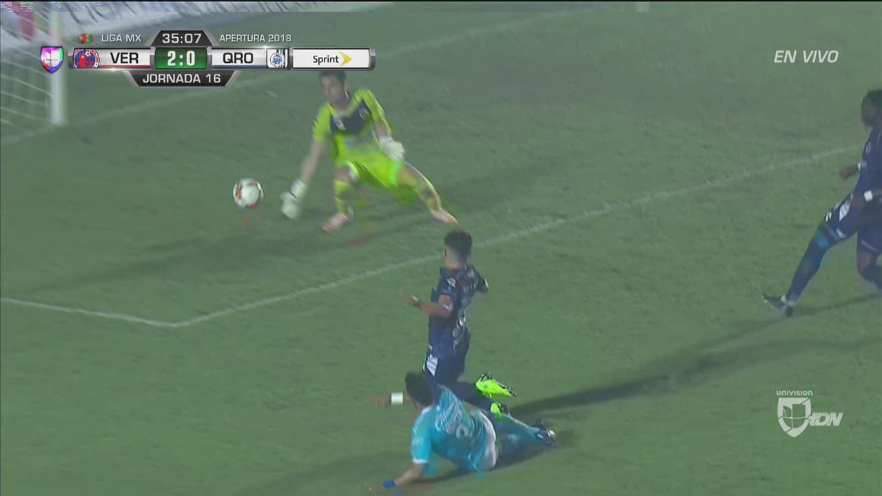 Gran reacción del arquero debutante Jurado, que se rifó en mano a mano con el goleador Sanvezzo y le negó el descuento.
