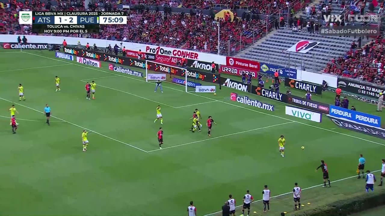 Matías Cóccaro recibe el esférico de forma cómoda, no lo piensa para sorprender al guardameta del Puebla, quien se estira y evita el empate.