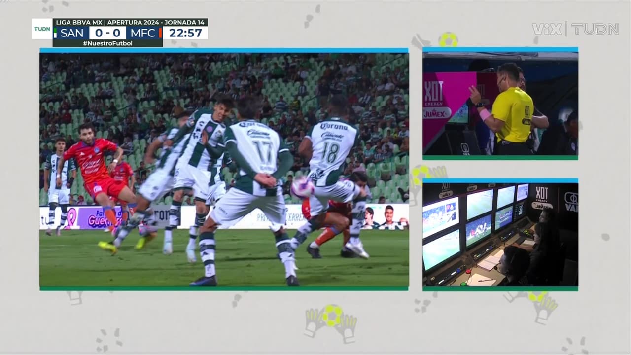 El árbitro ayudado por el video arbitraje anulan el penal marcado para el cuadro visitante.