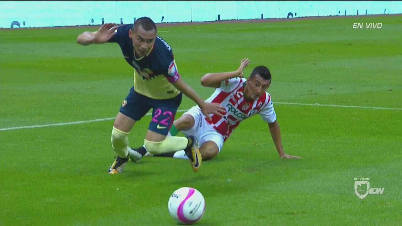 Paul Aguilar fue derribado dentro del área cuando intentaba llegar a línea de fondo.