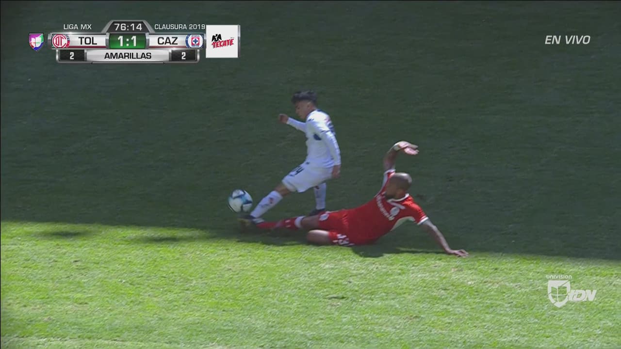 La barrida fue directo sobre el tobillo izquierdo de Misael Domínguez, aunque el árbitro lo dejó en tarjeta amarilla.