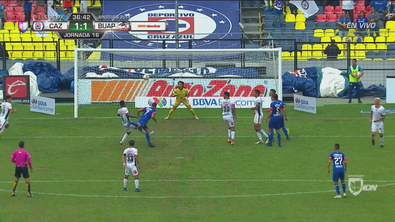 Completamente solo el charría voló un remate de cabeza desde el punto penal.